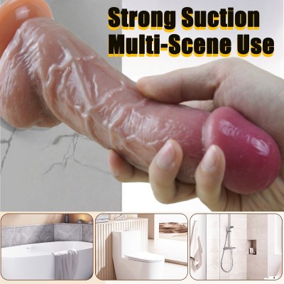 CR-1-SDA5-Realistic Liquid Silicone Dildo with Double Layer Soft Structure and Strong Suction Base