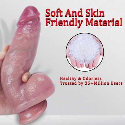 CR-1-SDA5-Realistic Liquid Silicone Dildo with Double Layer Soft Structure and Strong Suction Base