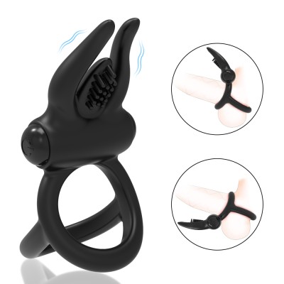 CR-3-400- Rabbit ear lock sperm ring 10 frequency USB charging vibration ring adult sex toys
